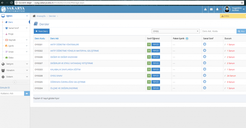 Eğitim Portalı : oyeg.sakarya.edu.tr