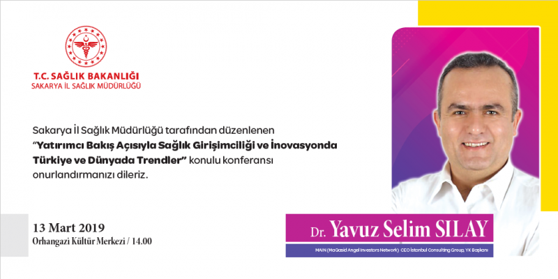 T.C. Sağlık Bakanlığı Sakarya İl Sağlık Müdürlüğü tarafından düzenlenen “Yatırımcı Bakış Açısıyla Sağlık Girişimciliği ve Inovasyonda Türkiye ve Dünyada Trendler” konulu konferans 13 Mart 2019 tarihinde Orhangazi Kültür Merkezinde saat 14:00'da gerçekleştirilecektir.